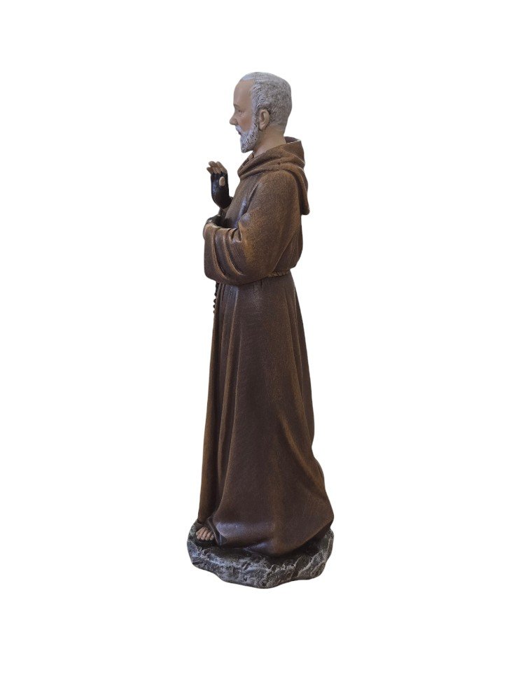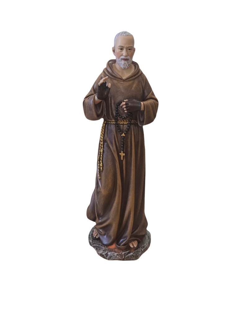 Crafted from durable resin, this detailed depiction of Padre Pio captures the essence of his deep spirituality and compassion. With gentle features and a serene expression, he radiates warmth and divine wisdom. The statue showcases his humble demeanor, wearing the traditional Capuchin habit, with hands bearing the stigmata, symbolizing his profound connection to Christ’s suffering. As a powerful intercessor and spiritual guide, this image offers comfort and inspiration to those seeking his help. This statue of Padre Pio serves as a timeless reminder of his unwavering faith, his miraculous healings, and his role as a beacon of hope and guidance for all.