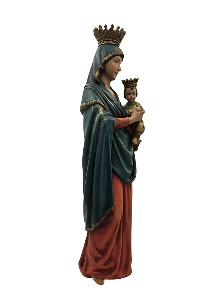In this statue, the artist depicts Our Lady of Perpetual Help simply and without the symbols and large sunburst we are accustomed to seeing with this image. It is a beautiful statue of Our Lady as Queen holding the King of Kings safely in her gentle embrace.