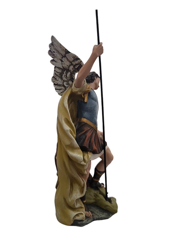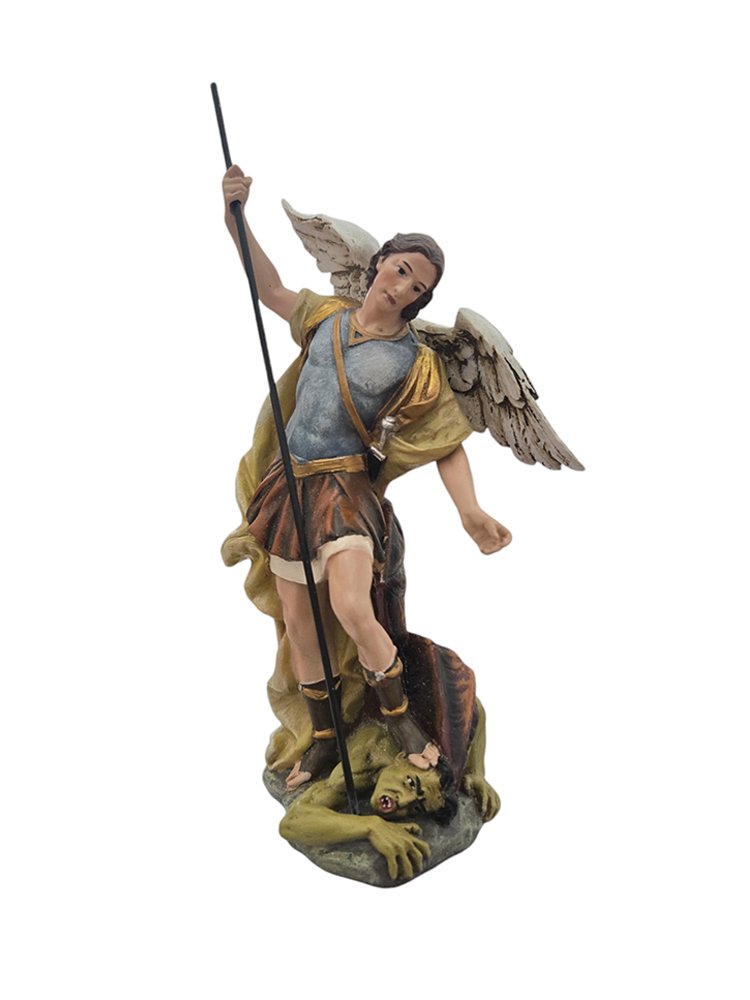 Saint Michael the Archangel, depicted in majestic stance, symbolizing his role as protector and defender against evil forces.