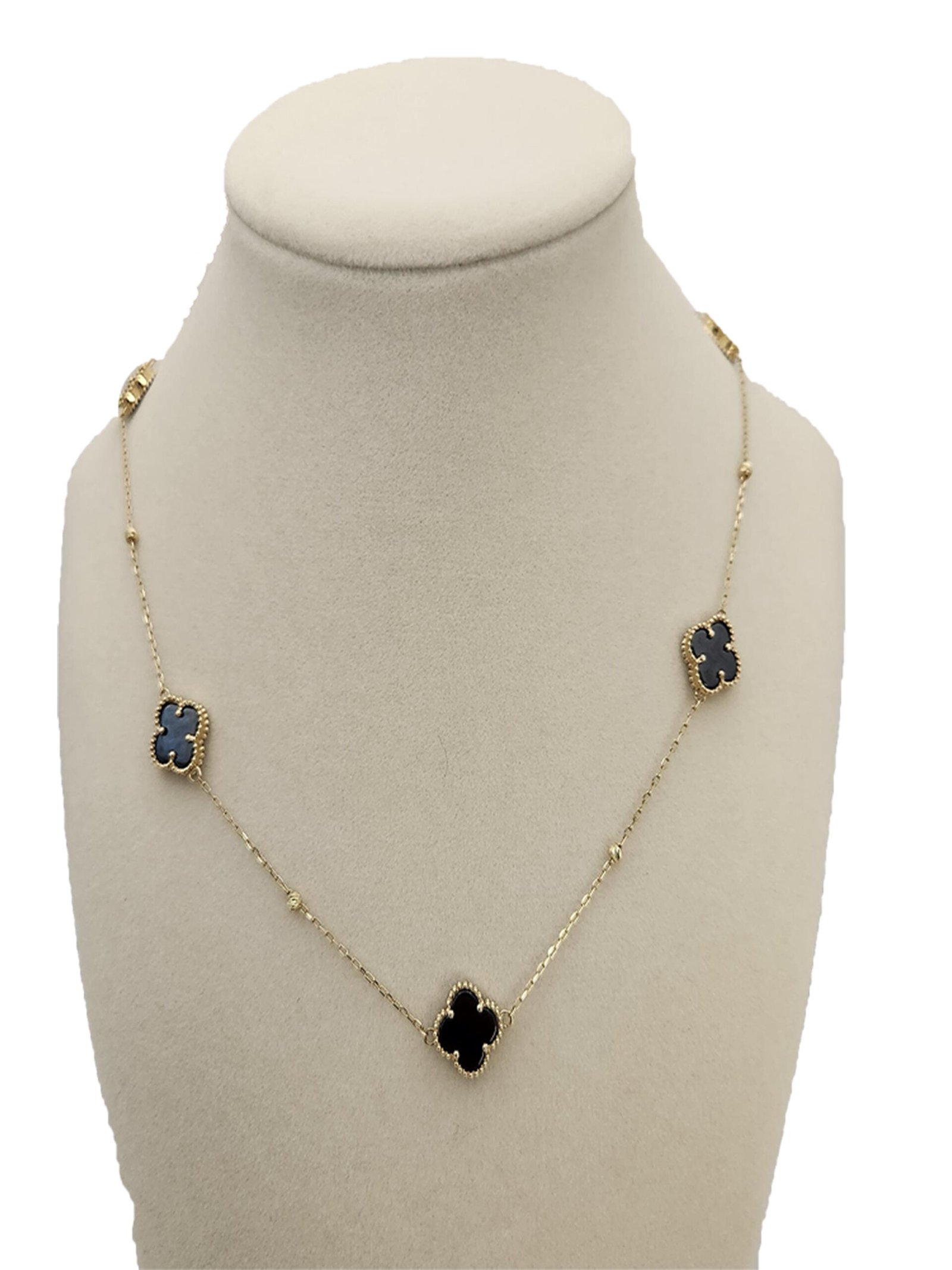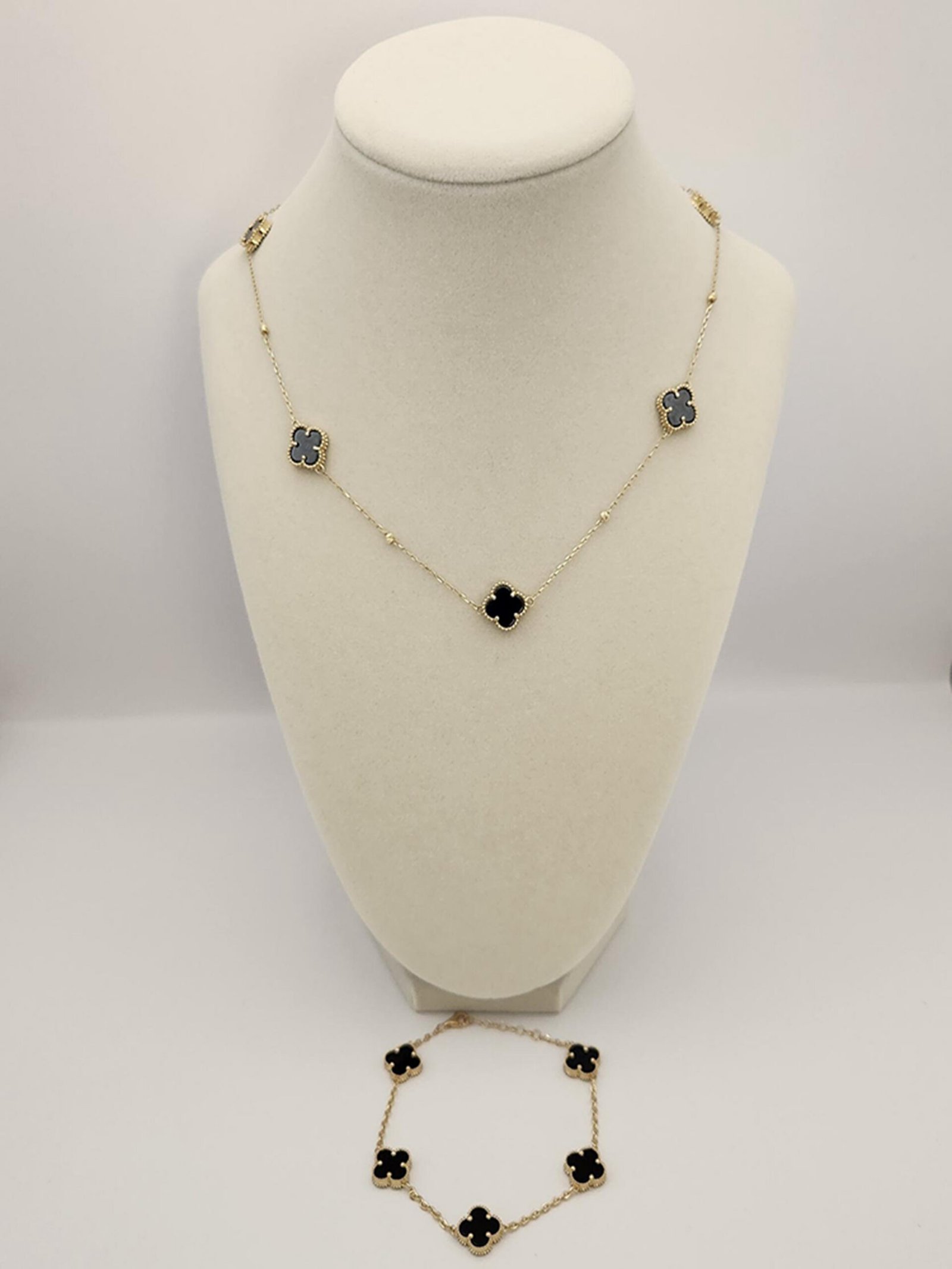This set includes a bracelet and necklace featuring a clytia love clover leaf design, crafted in 14K Italian gold.