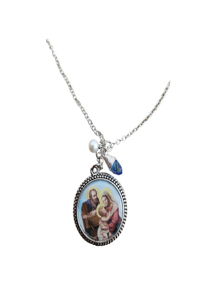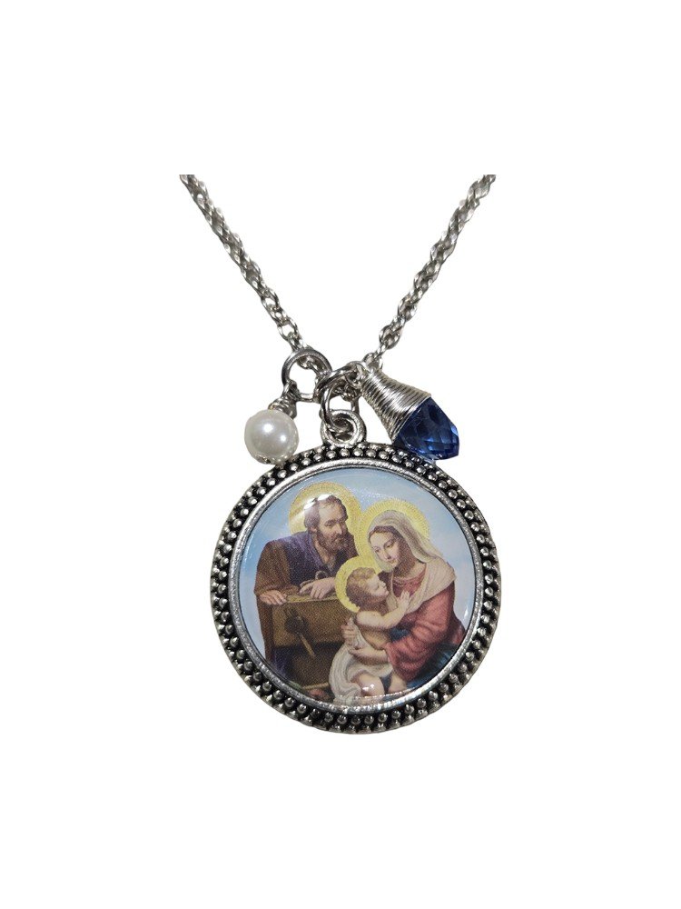 This medal features a Holy Family image with bead drops and a 22’’ chain.