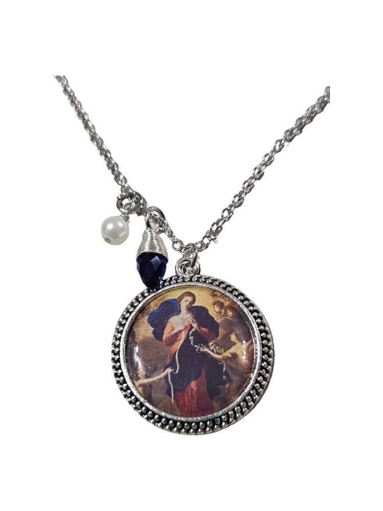 This medal features a Mary, Untier of Knots image with bead drops and a 22’’ chain.
