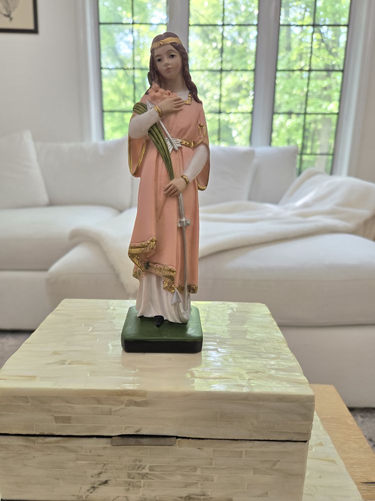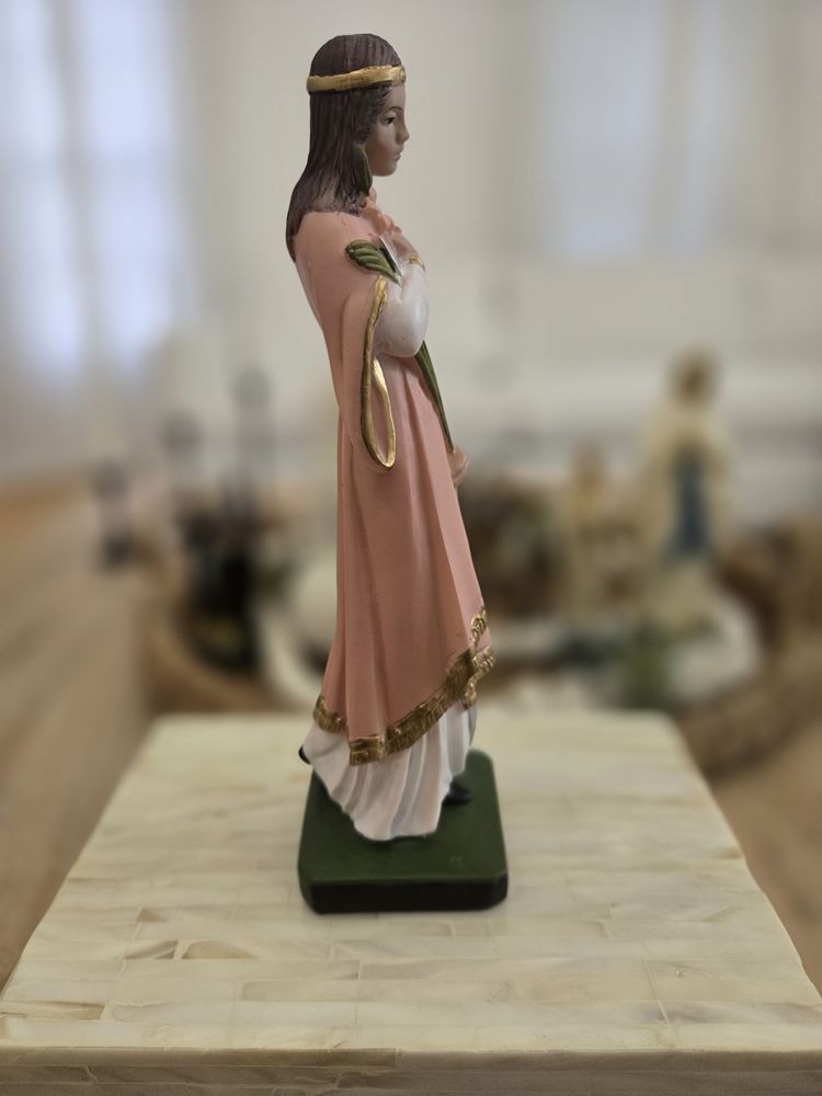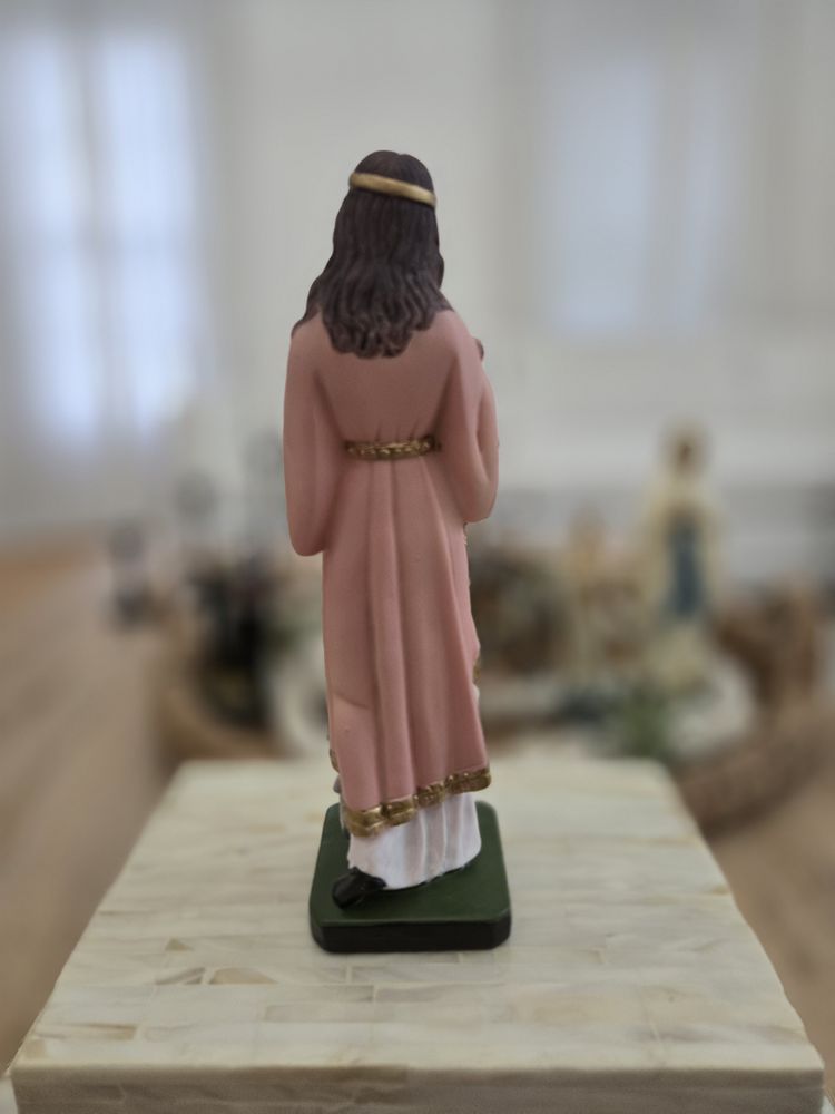 Crafted from durable resin, this statue of Saint Philomena captures her steadfast devotion and purity. With serene features and a reverent expression, she radiates divine grace and strength. As the patron saint of the Children of Maria Santísima, this image offers inspiration and protection to believers worldwide. This statue of Saint Philomena serves as a timeless reminder of her unwavering faith and her role as a guardian of purity and devotion.