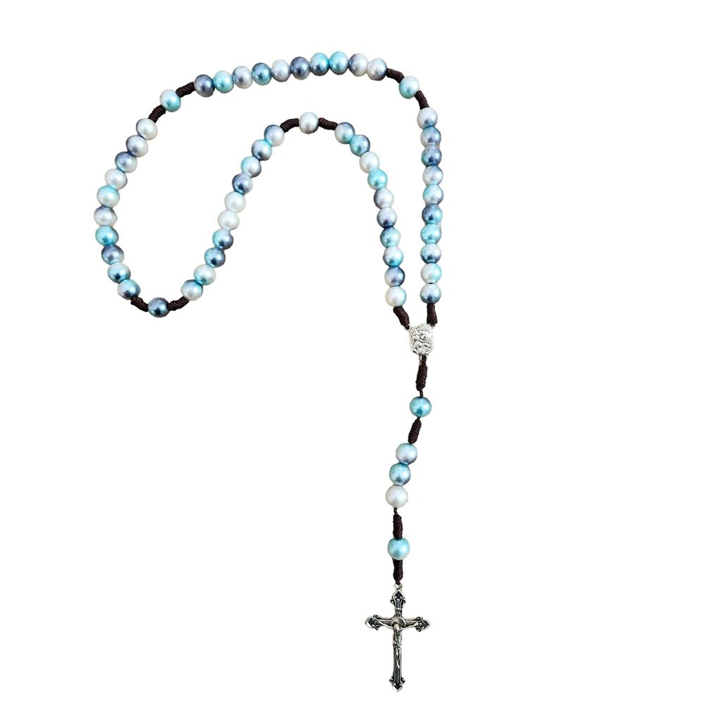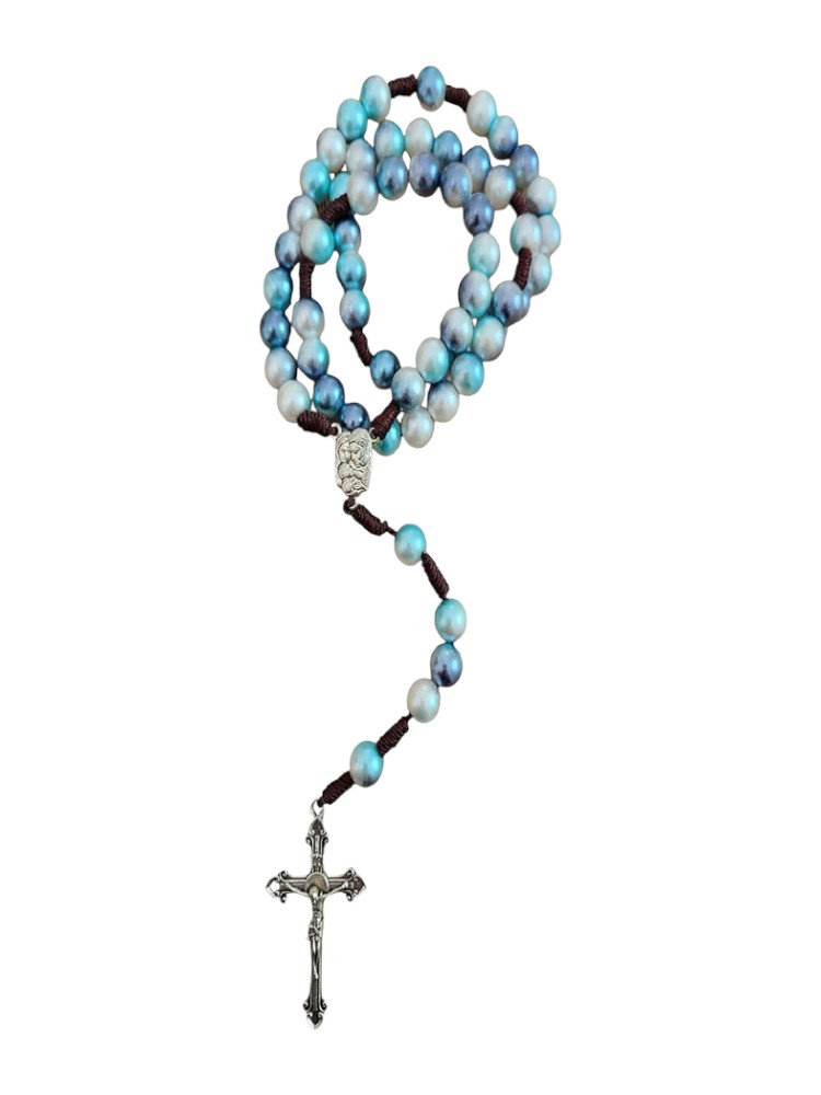 This two tone acrylic rosary features a very strong brown cord and due to its size it can also be worn around the neck as a necklace